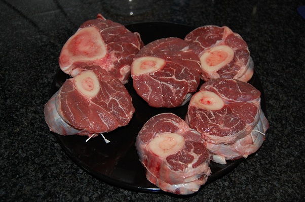 Amarre os ossobucos com barbante para não soltar o osso quando cozinhar.