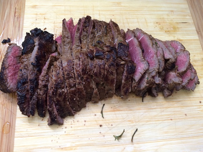 Na hora de fazer coloque uma ou duas colheres de azeite com uma colher de manteiga numa panela ou frigideira alta, use fogo alto e passe a carne por uns 10 minutos de cada lado. Tempere com sal. Tire do fogo e deixe descansar uns 5 min. Corte e pode comer!